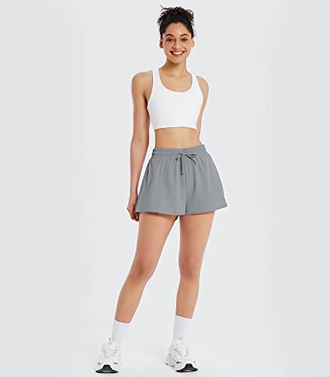 BALEAF Women's Athletic Running Shorts with Phone Pockets 2 in 1 Wokrout Shorts