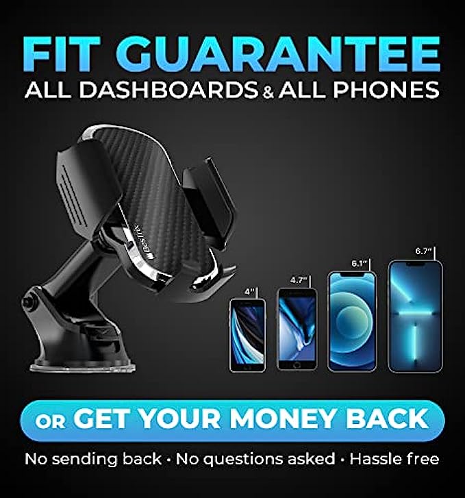 • Compatible with all smartphones up to 6.7” - The car phone holder mount is suitable for all kinds of mobile phones with brand thick cases, Battery cases, Otter box, Ring cases and it is exceptionally sturdy to hold your phone tightly.