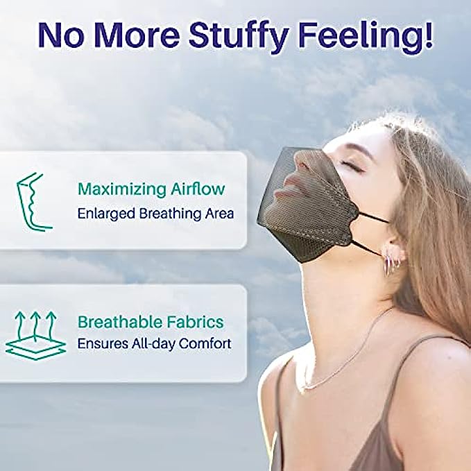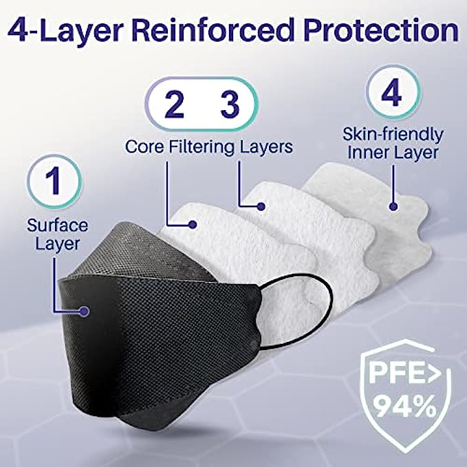 【Breathability & Great Protection】KF94 is made of skin-friendly non-woven fabric with excellent breathability, making it comfortable to wear and exhale. Meanwhile, it protects your breathing with high filtration efficiency (PFE ≥ 94%).