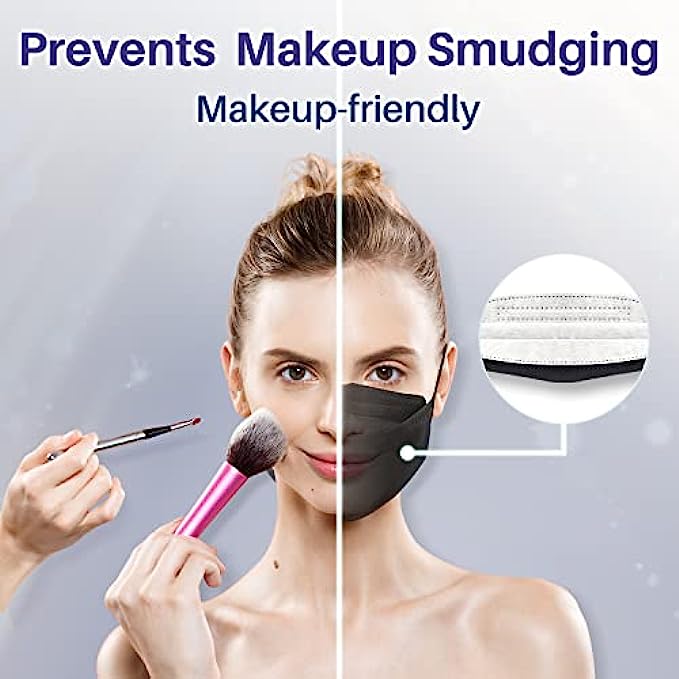 【Comfort for All】The mask comes with a bendable nose clip and elastic ear loops. It ensures comfortable wearing, prevents glasses from fogging up, and reduces pressure on the ears and face. Each box of masks has 30 individually packaged items, and each mask is black on the outside and white on the inside.