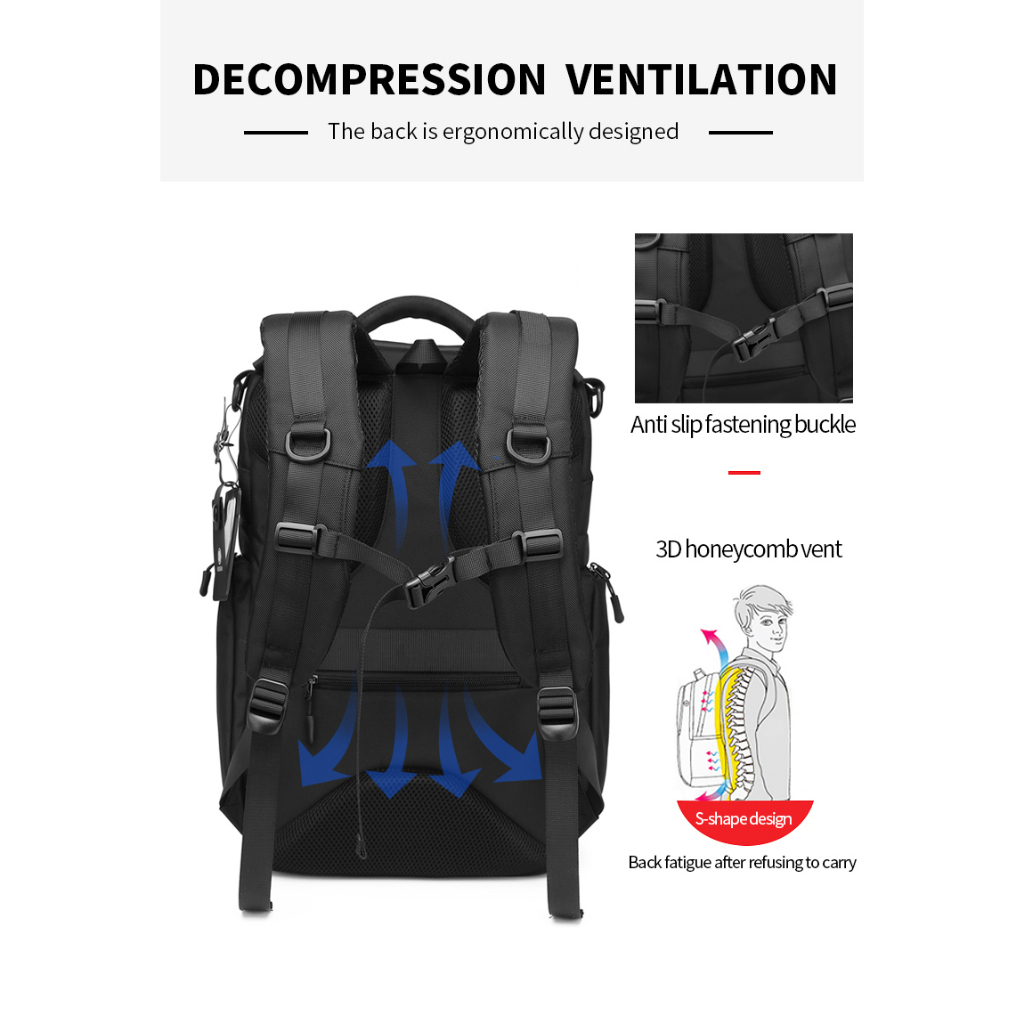 P&D Men Backpack 24L Multi-function Waterproof Backpacks 15.6" Laptop Travel Business Male USB Charging